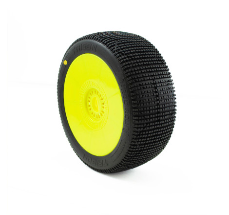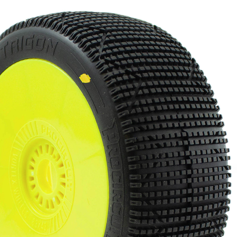 This is the TRIGON V3 tire from PROCIRCUIT. Precision-designed to deliver exceptional performance on clean surfaces or those with a moderate level of dust, the TRIGON V3 is the ideal choice regardless of the grip level. This tire features a flat rubber design that maximizes ground contact, providing greater control and an enhanced driving experience.